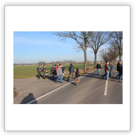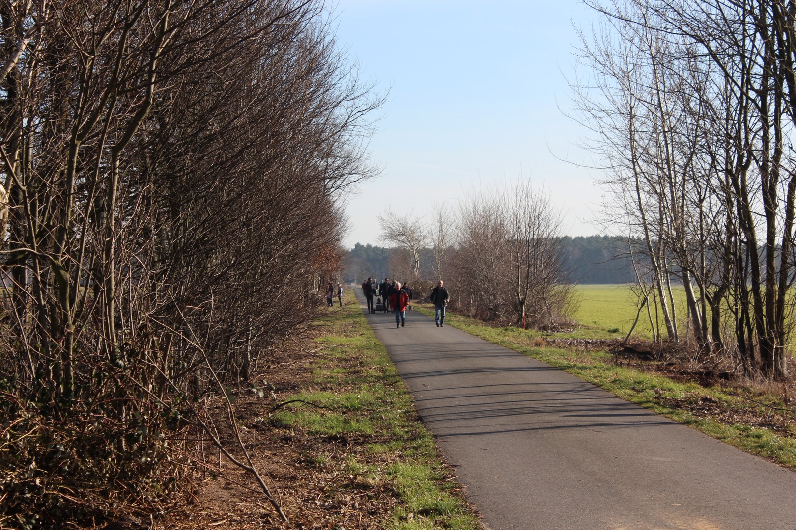 Kurz nach dem Überqueren des Tiebertteichgraben (Grenzgraben Realverband) marschierte der Trupp links in den Korbkampweg Richtung Kieskuhle Otto Wolf.
