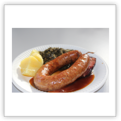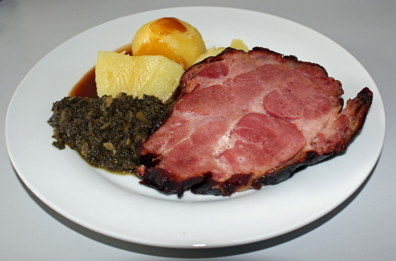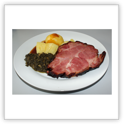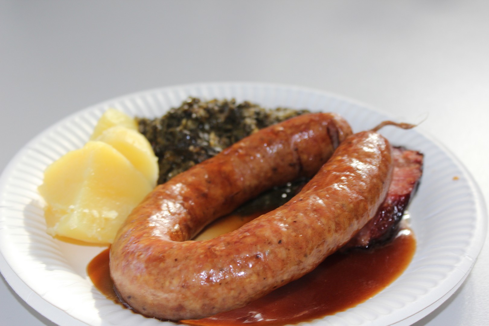 Es erwartete sie Grünkohl mit Kassler, Bregenwurst und Kartoffeln.