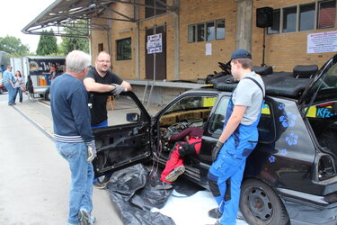 Ein Golf III Baujahr 95 wurde u. a. von Sven Hanusa nebst Helfern komplett demontiert, um den Zuschauern zu demonstrieren wie so etwas vonstattengeht.