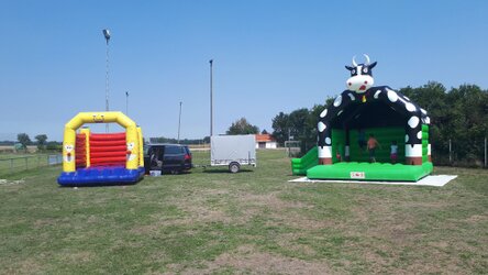 Kaum dass die Verkaufsstände wieder abgebaut waren, wurden zügig zwei große Hüpfburgen auf einem anderen Teil des Festplatzes errichtet.
