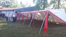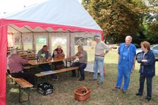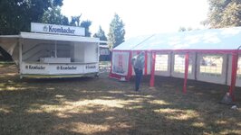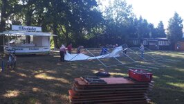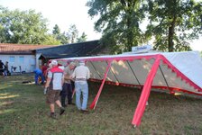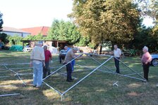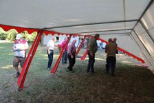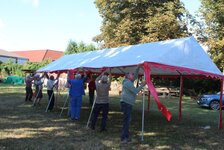 Während der Getränkewagen bereits stand, wurde mit vereinten Kräften das Festzelt aufgebaut.